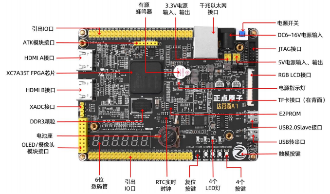这里笔者使用的是正点原子的达芬奇开发板,该系列采用的是 Xilinx Artix7 系列 XC7A35T-FGG484-2作为主控芯片,其余参数请自行查阅官方Wiki。
